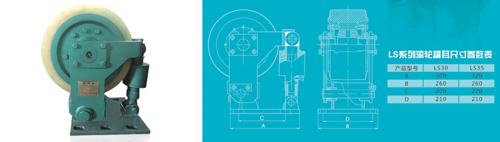 滾輪罐耳|礦用滾輪罐耳|聚氨酯滾輪罐耳|緩沖式滾輪罐耳|輕型滾輪罐耳|液壓滾輪罐耳|緩沖器|LS30滾輪罐耳