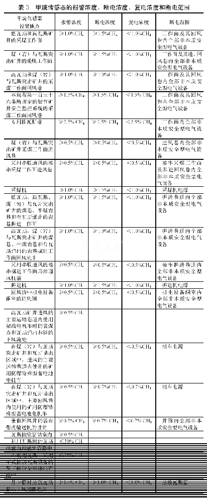 第一百六十八條 甲烷傳感器報警濃度、斷電濃度、復電濃度和斷電范圍必須符合表3規定。
