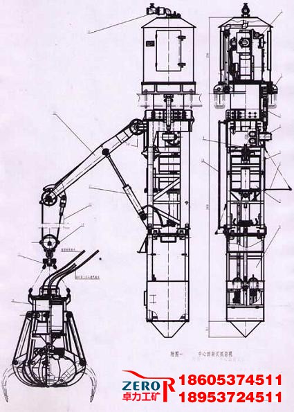 HZ一6B型中心回轉抓巖機主要用于開鑿豎井時抓取井內暴破后松散的巖石和礦物,抓裝卸入吊桶以實現出碴的自動化操作,對于提高鑿井速度和安全可靠性起到了至關重要的作用,并可用于地面抓取松散物料。