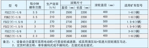 翻車機又名翻罐籠,其主要規格為:FDZ(B)Z(Y)-1(1.5)/6(9)。它是礦山和煤礦使用固定式礦車運輸中轉的主要卸料設備,具有生產效率高、使用簡單、安全可靠等特點!