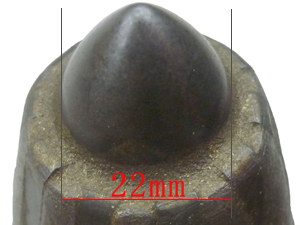 優勢一: 齒尖鑲有超粗粒壓燒結硬質合金鑲嵌, 合金直徑為22mm,超級耐磨 | 優勢二: 齒尖合金周圍覆蓋10條優質合金條, 保護胎體不受磨損,相對于耐磨焊層,更加耐磨, 使用壽命是普通截齒的2~3倍 |